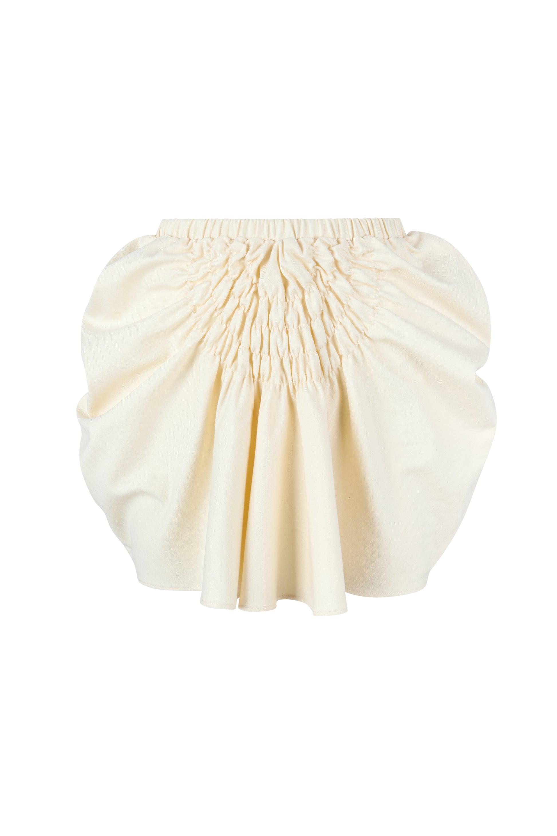 Our mini skirt with a semi-circle shirring detail.