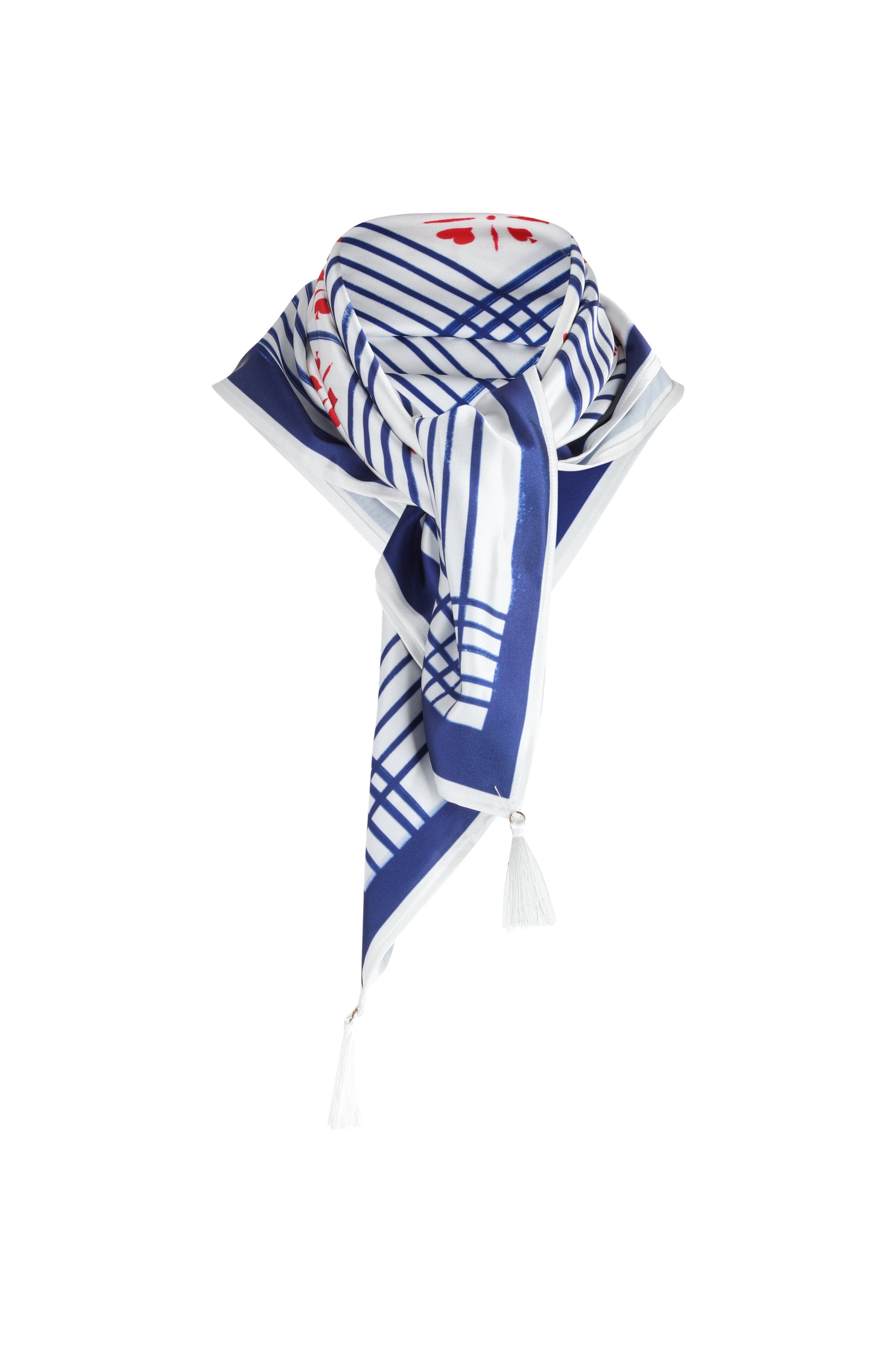 Our printed scarf with tassels on the edges.